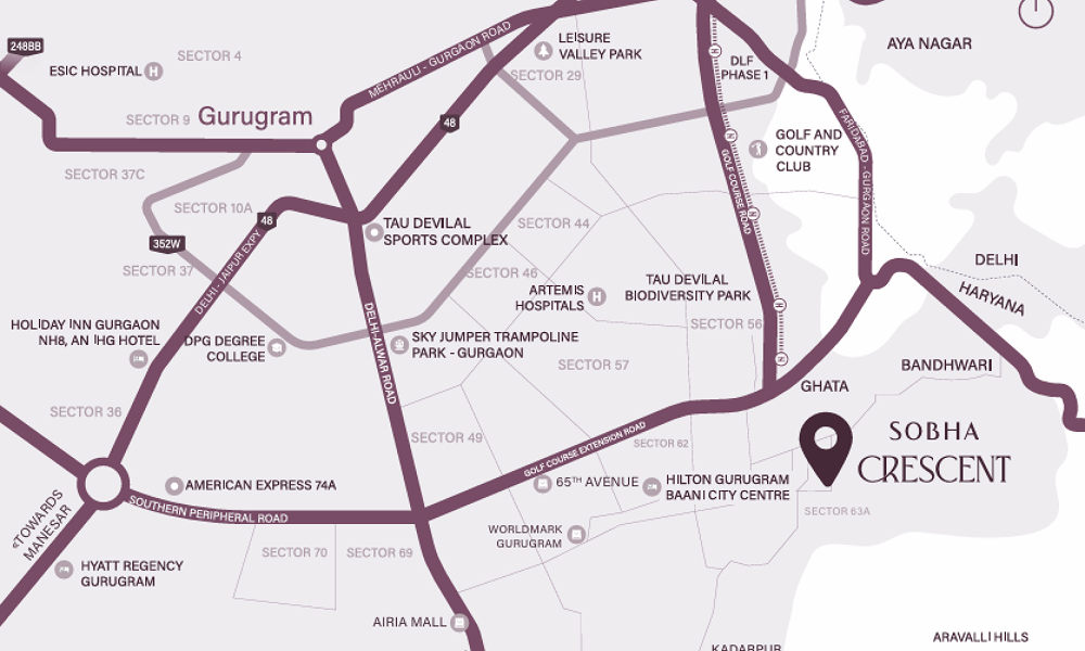Sobha Crescent, located in Sector 63A, Gurgaon, on Golf Course Extension Road, is a premium residential project by Sobha Limited. Situated in one of the city’s fastest-growing and most sought-after locations, it offers spacious 3 Bed Grande, 4 Bed Grande, and 4 Bed Grande + DH apartments, designed for modern families seeking comfort and ample space. The project enjoys excellent connectivity to major roads and key business hubs like Cyber City Gurgaon, ensuring smooth daily commutes. With reputed schools, hospitals, and shopping malls in close proximity, it offers a convenient and well-connected lifestyle.