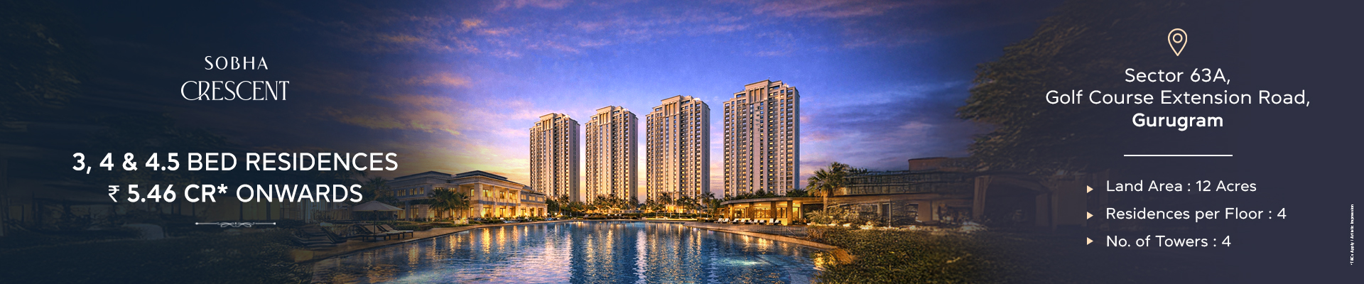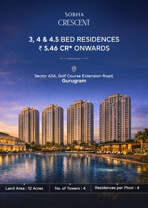 Sobha Crescent, located in Sector 63A, Gurgaon, on Golf Course Extension Road, is a premium residential project by Sobha Limited. Situated in one of the city’s fastest-growing and most sought-after locations, it offers spacious 3 Bed Grande, 4 Bed Grande, and 4 Bed Grande + DH apartments, designed for modern families seeking comfort and ample space. The project enjoys excellent connectivity to major roads and key business hubs like Cyber City Gurgaon, ensuring smooth daily commutes. With reputed schools, hospitals, and shopping malls in close proximity, it offers a convenient and well-connected lifestyle.
